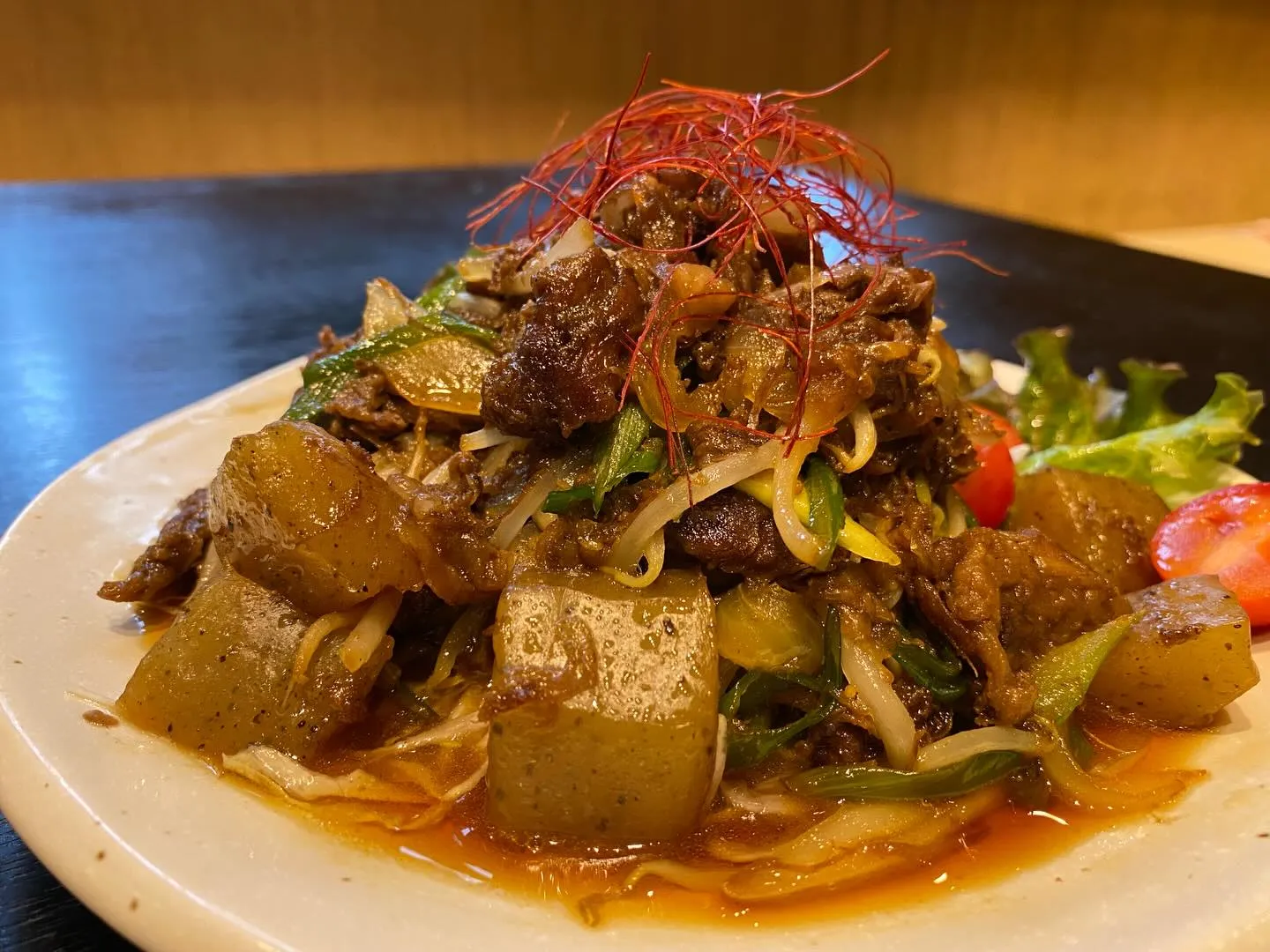 【国産牛すじとネギの甘辛炒め】 ¥1300(税込)